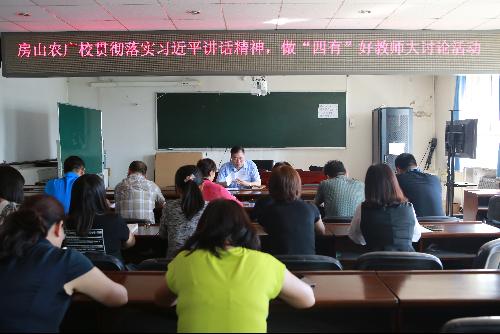 为贯彻落实习近平讲话精神和中心做“四有”好教师大讨论活动实施方案要求,进一步激发教职工的积极性、主动性和创造性,9月12日,农广校房山分校组织全体教师开展学习贯彻落实习近平讲话精神,做“四有”好教师大讨论活动。